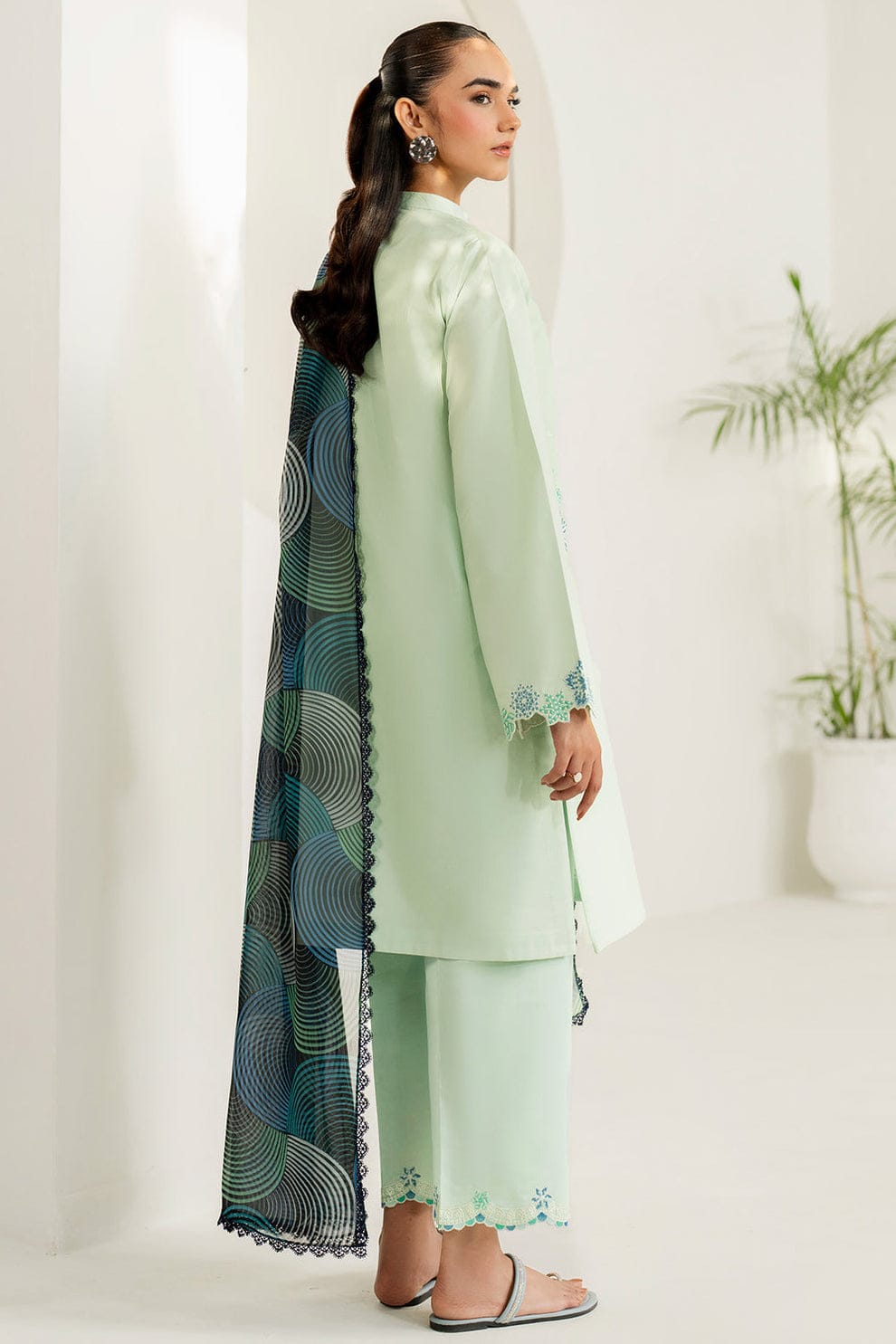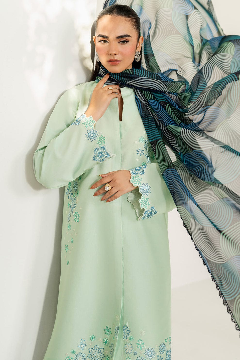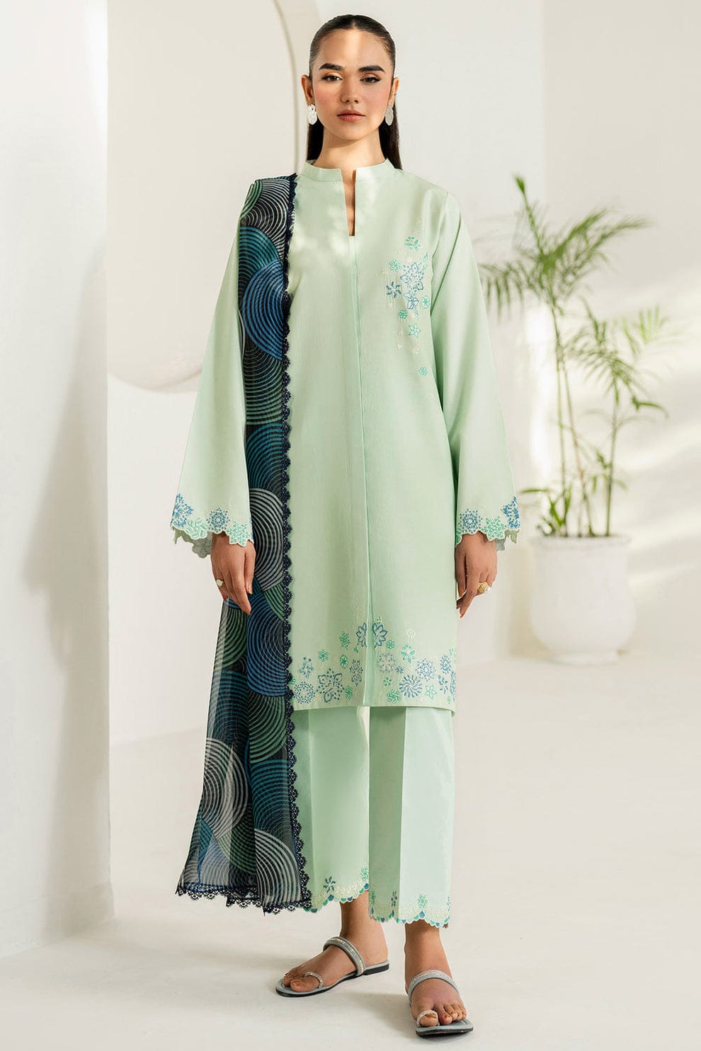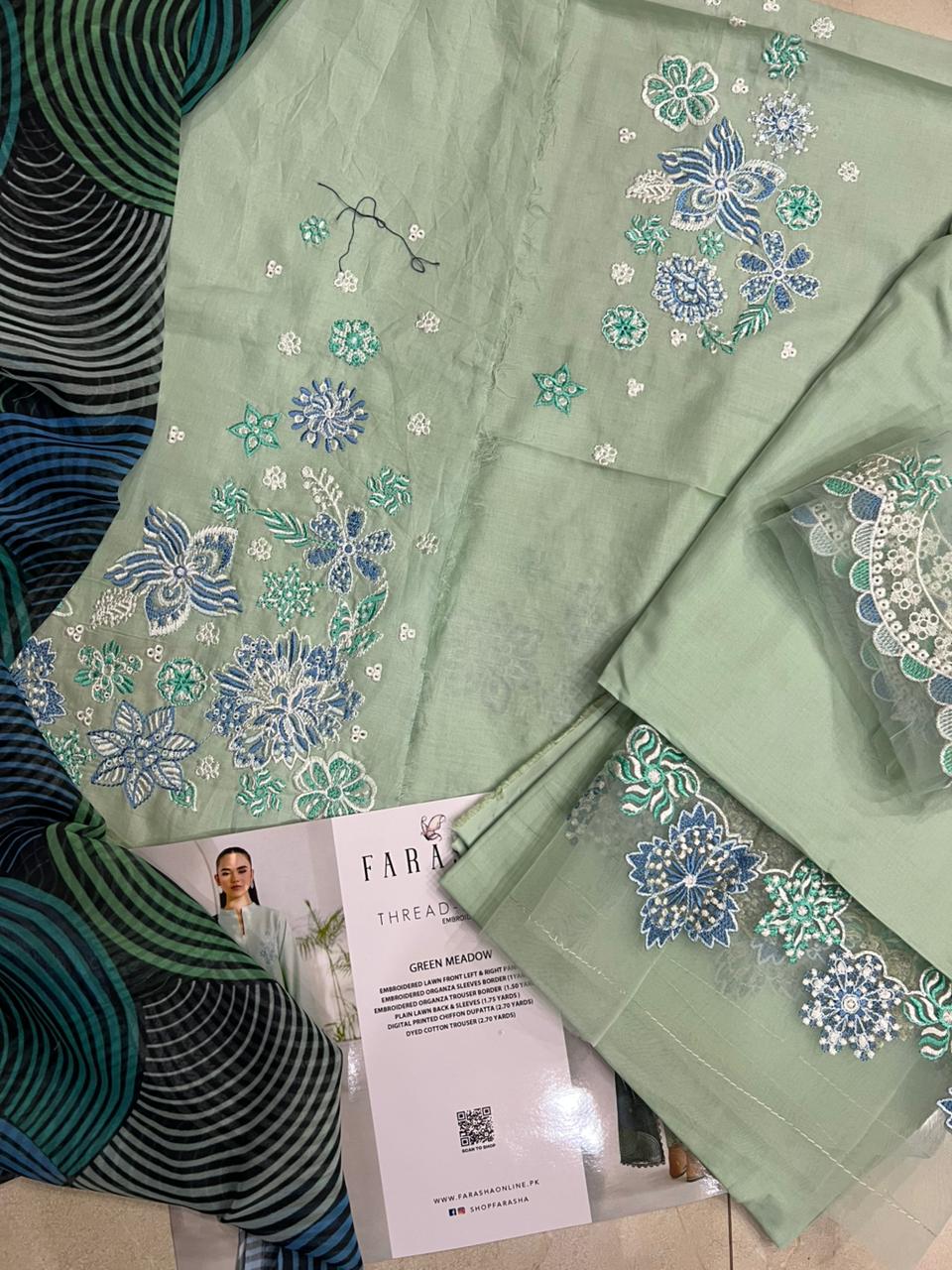 3 Piece | Farasha by Baroque | Thread Lines Embroidered | Green Meadow