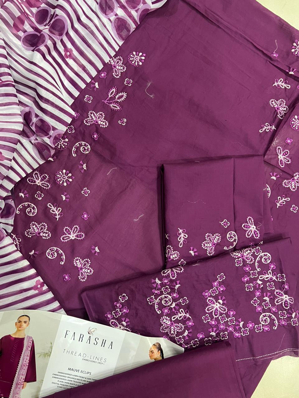 Be the first to review “3 Piece | Farasha by Baroque | Thread Lines Embroidered | Mauve Eclips”