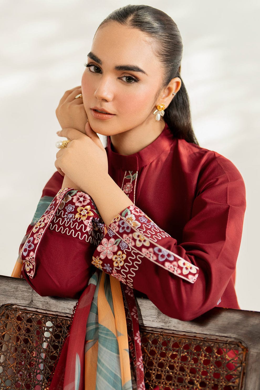 Farasha by Baroque  | Thread Lines Embroidered | Maroon Muse